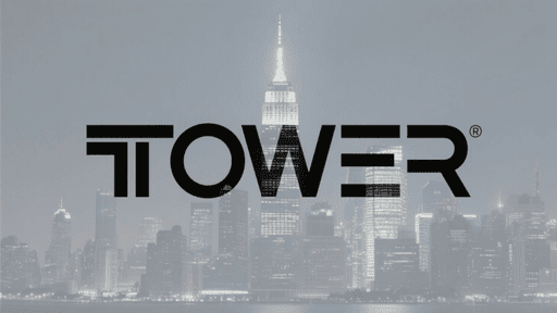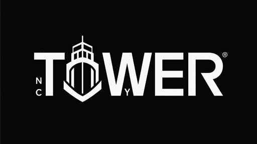 “TOWER”というロゴの中にニューヨークの風景を貼り付ける、背景は黒、ロゴは画面いっぱいに大きく