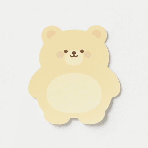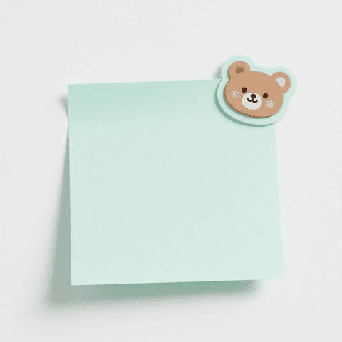cute sticky note, pastel mint green, square shape with rounded corners, small cartoon bear icon in top right corner, soft smooth paper texture, kawaii style, plain white background, front view, 1:1 aspect ratio, high quality illustration