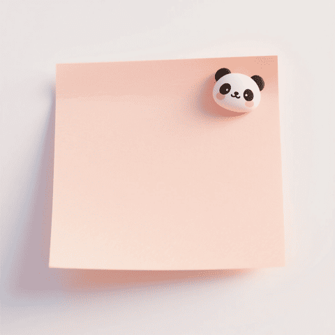cute sticky note, pastel peach, square shape with rounded corners, small cartoon panda icon in top right corner, soft smooth paper texture, kawaii style, plain white background, front view, 1:1 aspect ratio, high quality illustration