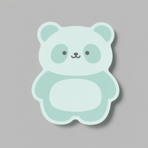 cute sticky note shaped like a panda, pastel mint green, full body silhouette, round head with small ears, kawaii style, soft smooth paper texture, central blank space for writing, plain white background, front view, 1:1 aspect ratio, high quality illustration