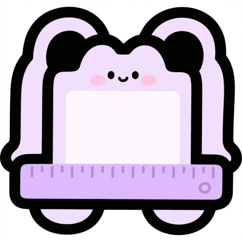 cute sticky note shaped like a ruler, pastel lavender, rounded edges, kawaii style, soft smooth paper texture, central blank space for writing, plain white background, front view, 1:1 aspect ratio, high quality illustration