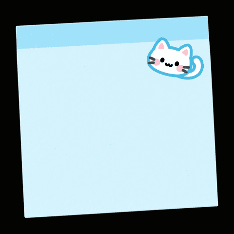cute sticky note, pastel blue, square shape with rounded corners, small cartoon cat icon in top right corner, soft smooth paper texture, kawaii style, plain white background, front view, 1:1 aspect ratio, high quality illustration