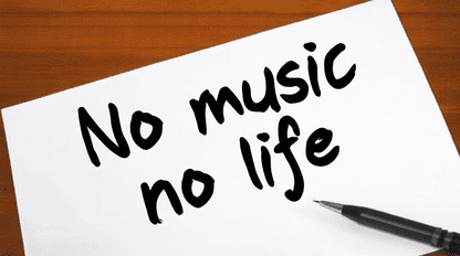 “no music no life” written on the paper in the black paint