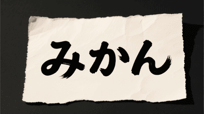 “みかん” written on the paper in the black paint