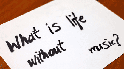 “音楽の無い人生なんて” written on the paper in the black paint