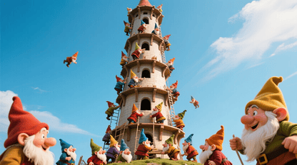 100人の小人がとても高い塔を建設している