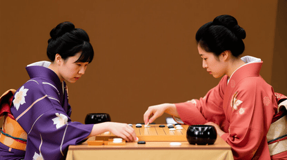 和服を着た女流棋士の囲碁対戦
