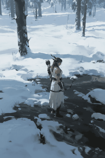 今回使用したプロンプトは、すべて創作者目線のものでした。それ以外に、画像上の人物を主体としたプロンプトでも視点変換できるようです。例えば、「アルテミスは、深い森の奥の方をじっと見つめている。」というようなプロンプトです。