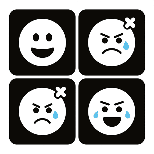ベクターフレンドリーなピクトグラムアイコン、2×2グリッド、喜,怒,哀,楽