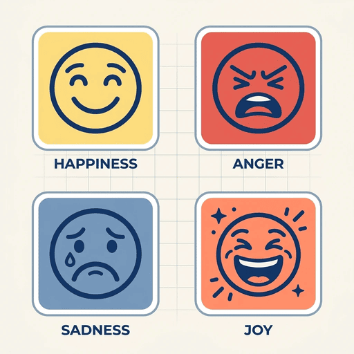 ピクトグラムアイコン、2×2グリッド、喜,怒,哀,楽