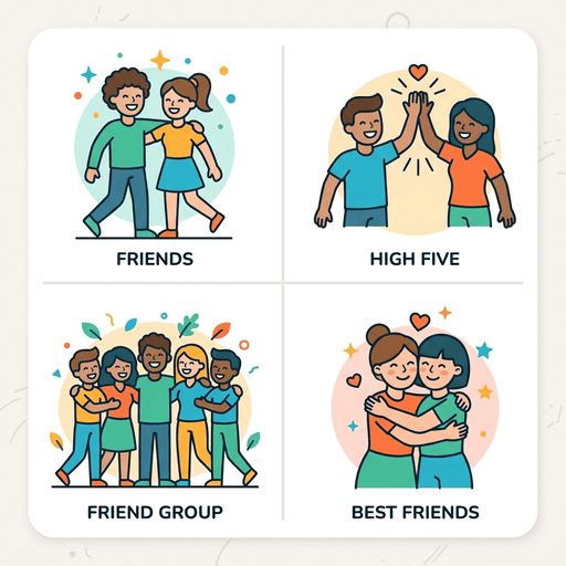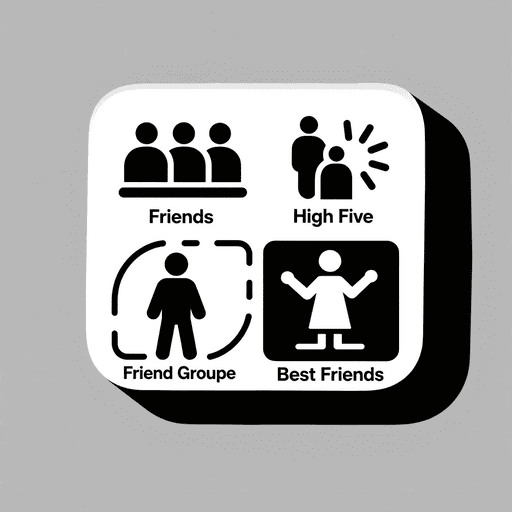 ベクターフレンドリーなピクトグラムアイコン、2×2グリッド、Friends,High Five,Friend Groupe,Best Friends