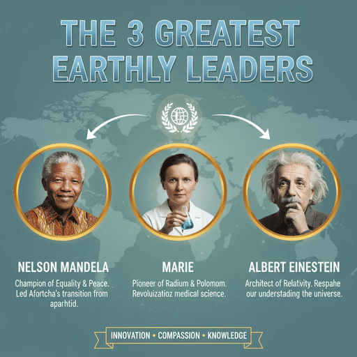 地球上でもっとも偉大とされる3人の人物のインフォグラフィックを作成してください。