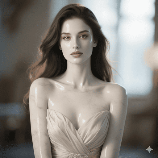 画像に写っている被写体を、輝く大理石で作られた超詳細な彫刻の写実的な画像にしてください。彫刻は滑らかで反射する大理石の表面を持ち、その光沢と芸術的な技巧を強調してください。デザインはエレガントで、大理石の美しさと深みを際立たせてください。画像内の照明は彫刻の輪郭と質感を高め、視覚的に見事で魅力的な効果を生み出してください。