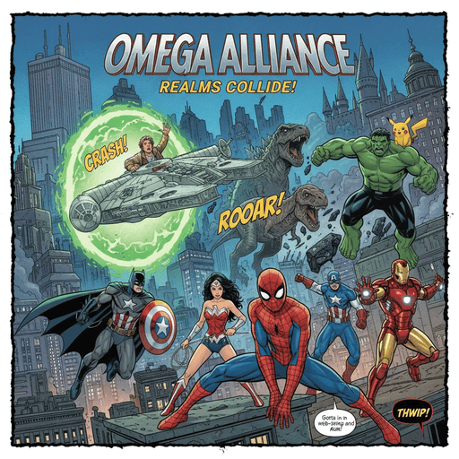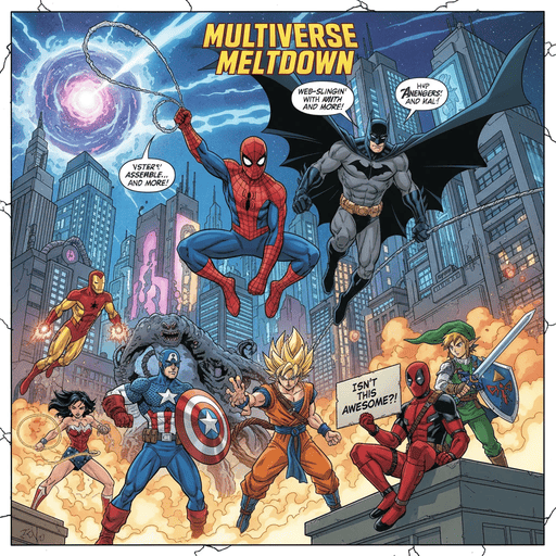 複数キャラクターのクロスオーバー漫画を作成してください。