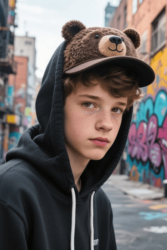 realistic teenage boy (1.1), bear animal cap (1.2),