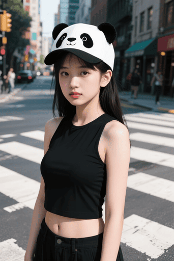realistic teenage girl (1.1), panda animal cap (1.2),