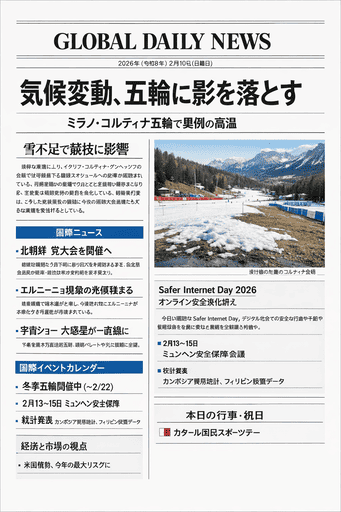 2026年2月10日の新聞の一面記事