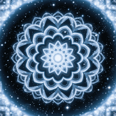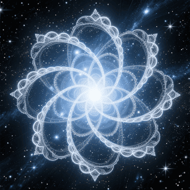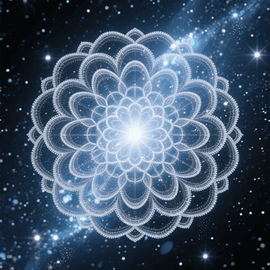 spirograph fractal(1.2), cosmic mandala(1.2), galaxy center(1.1), starry sky background(1.1), silver light(1.1), blue white glow(1.1), ethereal atmosphere(1.1), floating in space(1.0), radial symmetry(1.1), ultra detailed(1.1), cosmic dust particles(1.0), high resolution(1.1)