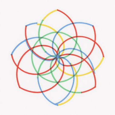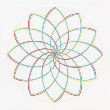 spirograph drawing(1.2), precise geometric pattern(1.2), ultra sharp lines(1.2), clean lineart(1.2), crisp edges(1.2), smooth white paper background(1.2), bright red blue green yellow lines(1.1), uniform line thickness(1.2), perfect symmetry(1.2), high detail(1.1), minimalistic composition(1.0), flat lighting(1.0)