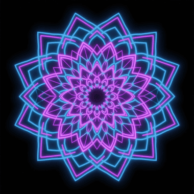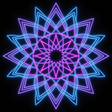 spirograph pattern(1.2), geometric mandala(1.1), neon glow(1.2), black background(1.2), luminous lines(1.1), intricate detail(1.1), blue and purple gradient(1.1), magenta accents(1.0), radial symmetry(1.1), digital art(1.0), ultra sharp lines(1.1), glowing center(1.1), high contrast(1.1)