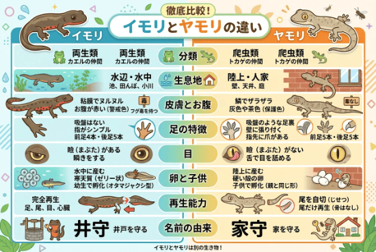 イモリとヤモリの違いを説明するインフォグラフィックを作成してください。