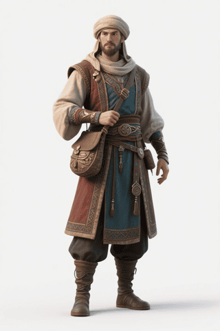 RPGの城下町、アップロードした図1・2・3・4・5の画像の人物をそれぞれ複数生成しウォーリーを探せ風の画像にする。図6の人物がどこかに1人だけ配置されている。風景に散りばめられた混雑したシーン。